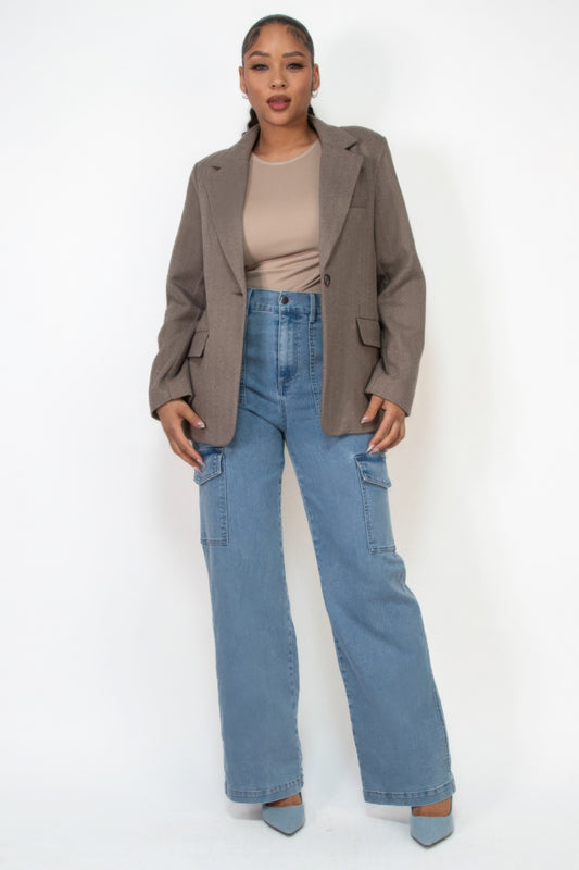 Single Button Crop Blazer With Tailored Pants Set